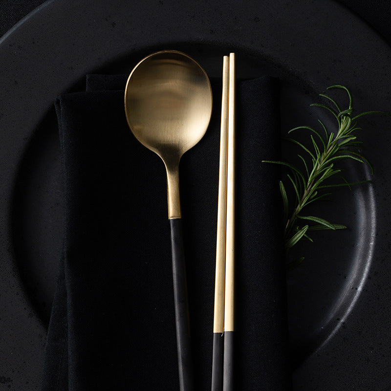 Luxe Divine Collection ~ Chopsticks Spoon Tableware Black Gold Handle Long Chopsticks