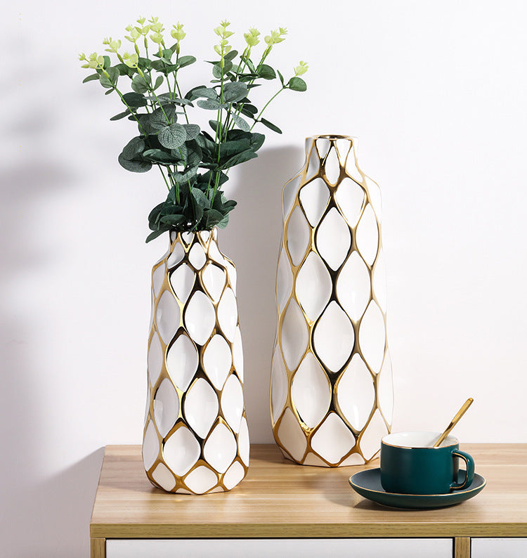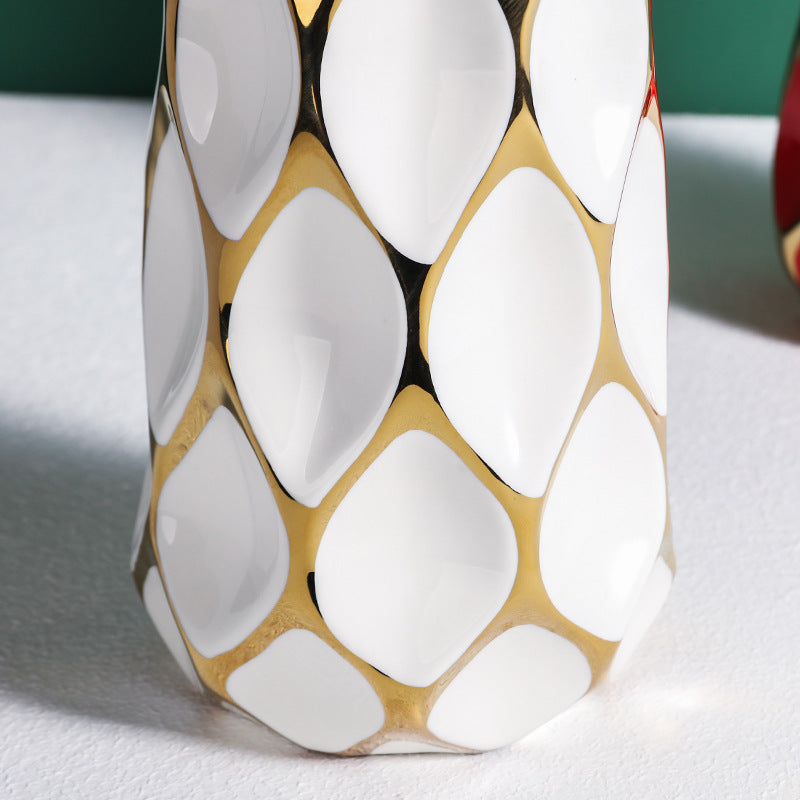 Luxe Divine Collection ~ Italian Geometric Minimalist Grid Ceramic Ornament Vase