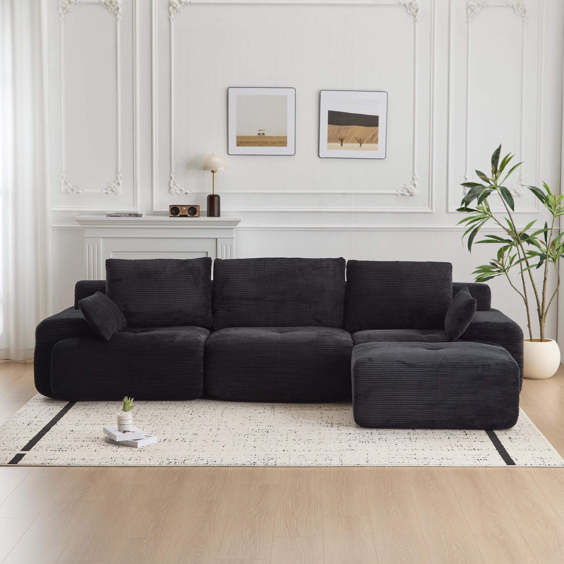 Product Name:Modern Memory Foam Compressed Sofa,Large Sectional Couches for Living Room,Pet-Friendly Cloud Modular Sectional Sofa,Corduroy Fabric,Extra Deep Loveseat,No Assembly required, Black